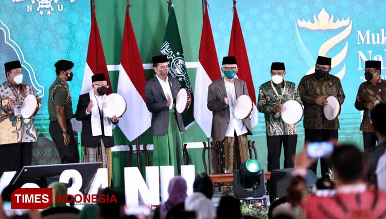 TIMES Ponorogo/Presiden Jokowi (Joko Widodo) membuka secara resmi Muktamar Ke-34 Nahdlatul Ulama di Pondok Pesantren Darussa’adah, Gunung Sugih, Lampung Tengah, Rabu (22/12/2021). (FOTO: Moh Ramli/TIMES Indonesia)