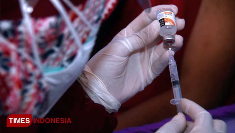 TIMES Ponorogo/Salah satu tenaga kesehatan saat mengisi dosis vaksin untuk disuntikkan. (FOTO: Adhitya Hendra/TIMES Indonesia)